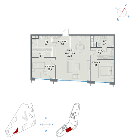Купить 2к квартиру 89 м²