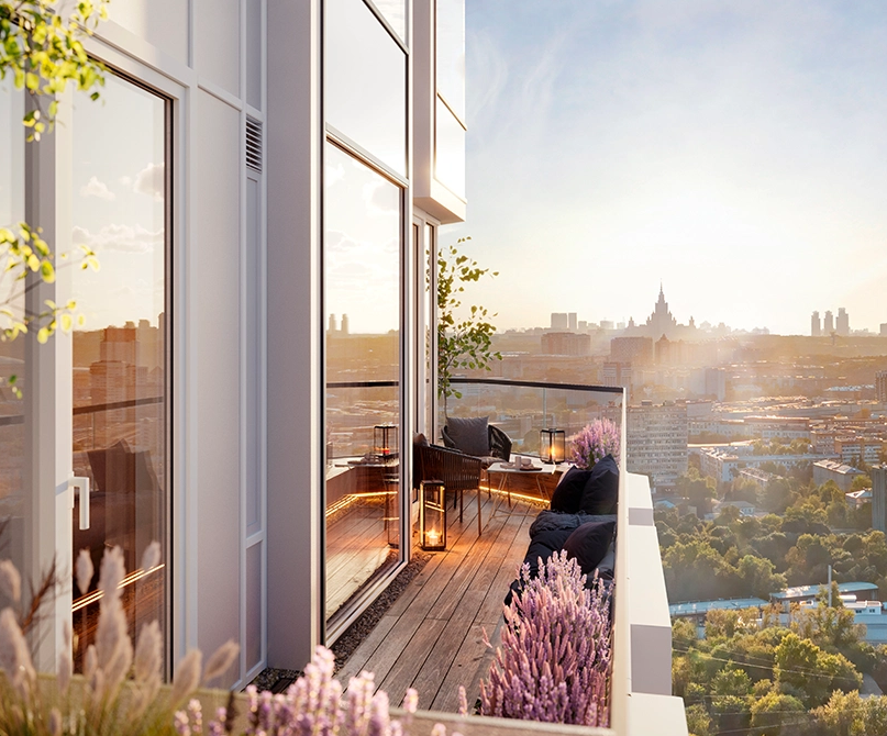 Две башни — 34 и 49 этажей — открывают захватывающие виды на Москву из каждой квартиры. Архитектурной доминантой проекта становится мост, соединяющий башни на высоте 80 метров. SocialHUB — целый мост бесплатной инфраструктуры для жителей на уровне 22 этажа с клубным форматом доступа, финансовое содержание которого обеспечивается за счет сдачи в аренду коммерческих помещений на 1 этаже. Просторное гранд-лобби завораживает с первых шагов — панорамное остекление и центральное световое окно в потолке, натуральные материалы отделки, живые деревья и камин — создают атмосферу спокойствия и безмятежности.Для комфорта жителей предусмотрен отдельный вход для курьеров и комната приема посылок.
