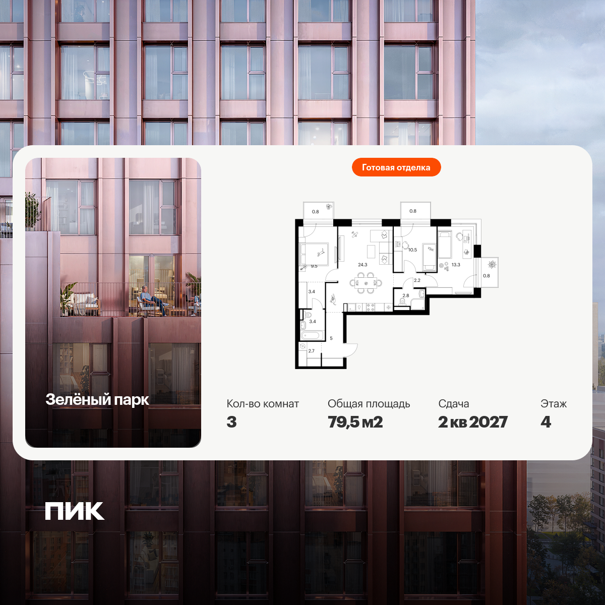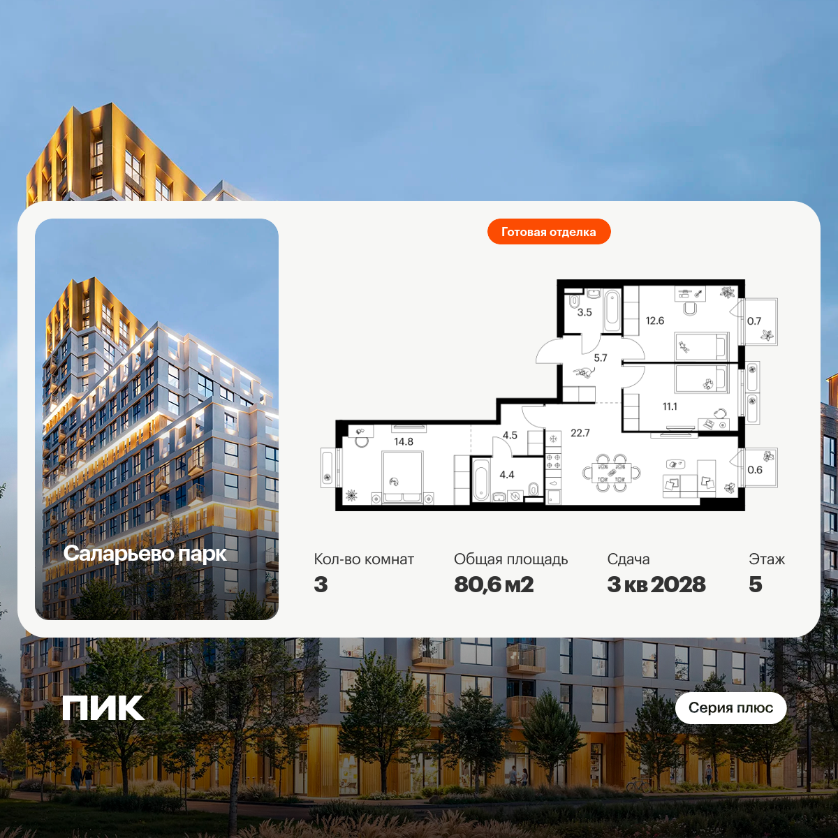Продаётся 3-комн.квартира площадью 82.50 кв.м на 11 этаже 27 этажного дома (Корпус 4.3, секция 3) проекта ПИК Амурский парк. Светлый просторный подъезд на уровне земли, функциональная планировка, большие окна, с отделкой.