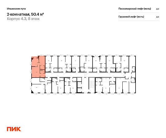 Продаётся 2-комн.квартира площадью 50.40 кв.м на 8 этаже 9 этажного дома (Корпус 4.3, секция 1) проекта ПИК Ильинские луга. Светлый просторный подъезд на уровне земли, функциональная планировка, большие окна, с отделкой.