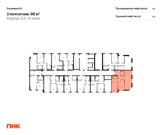 Продаётся 2-комн.квартира площадью 68.10 кв.м на 14 этаже 21 этажного дома (Корпус 3.5, секция 1) проекта ПИК Руставели 14. Светлый просторный подъезд на уровне земли, функциональная планировка, большие окна, с отделкой.