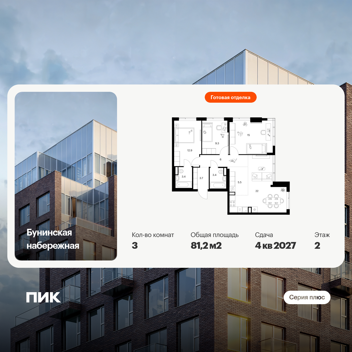 Продаётся 3-комн.квартира площадью 76.40 кв.м на 13 этаже 62 этажного дома (Корпус 1.5, секция 2) проекта ПИК Полар. Светлый просторный подъезд на уровне земли, функциональная планировка, большие окна, с отделкой.