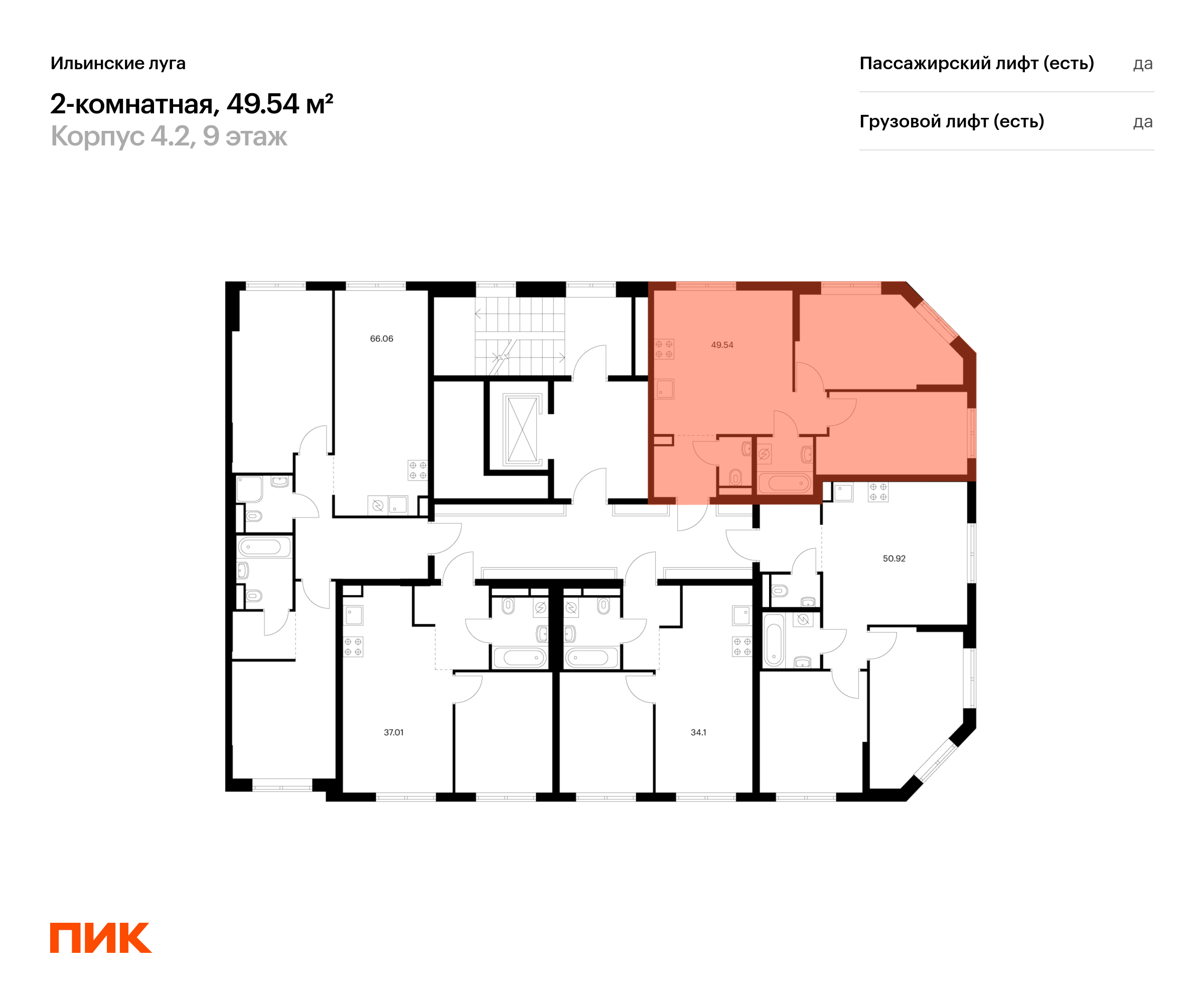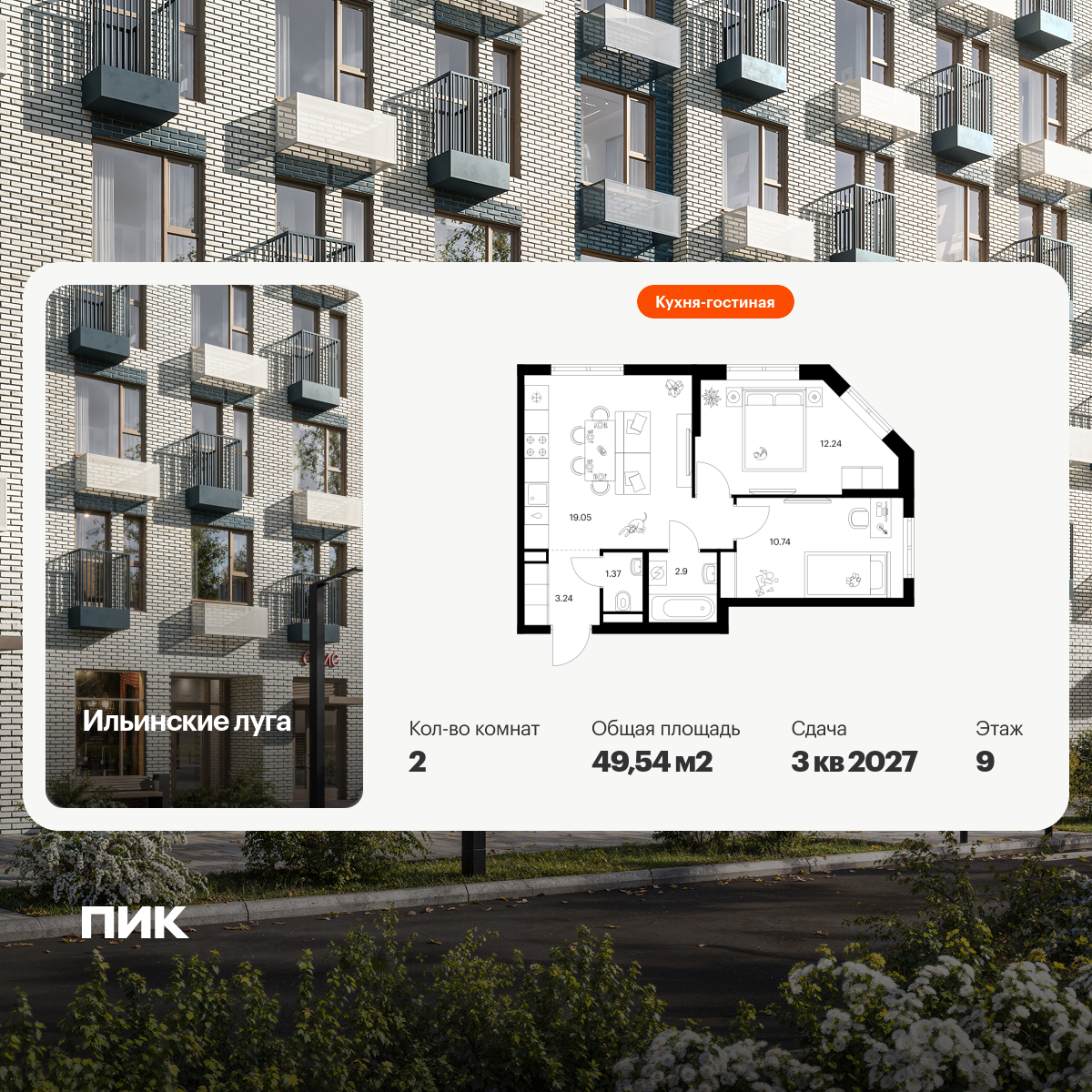 Продаётся 2-комн.квартира площадью 49.54 кв.м на 9 этаже 9 этажного дома (Корпус 4.2, секция 4) проекта ПИК Ильинские луга. Светлый просторный подъезд на уровне земли, функциональная планировка, большие окна, с отделкой.
