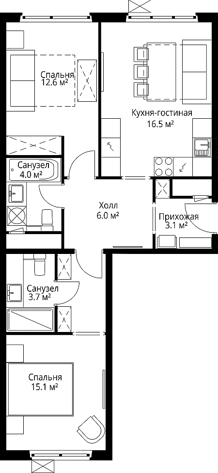 Купить 2к квартиру 50 м² в ЖК Восточное Бутово
