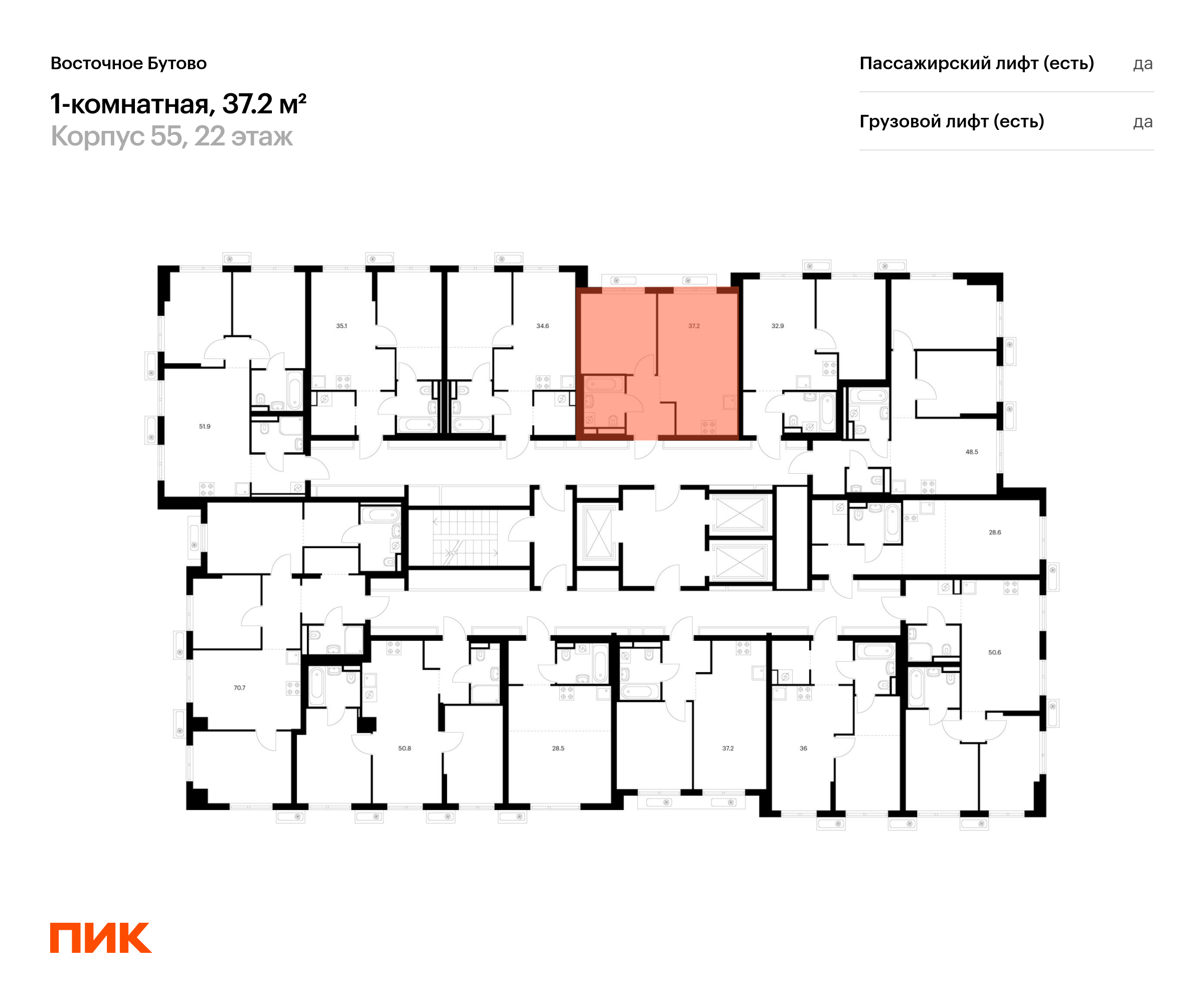 Продаётся 1-комн.квартира площадью 37.20 кв.м на 22 этаже 25 этажного дома (Корпус 55, секция 1) проекта ПИК Восточное Бутово. Светлый просторный подъезд на уровне земли, функциональная планировка, большие окна, с отделкой.