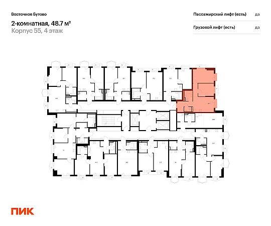 Продаётся 2-комн.квартира площадью 48.70 кв.м на 4 этаже 25 этажного дома (Корпус 55, секция 1) проекта ПИК Восточное Бутово. Светлый просторный подъезд на уровне земли, функциональная планировка, большие окна, с отделкой.