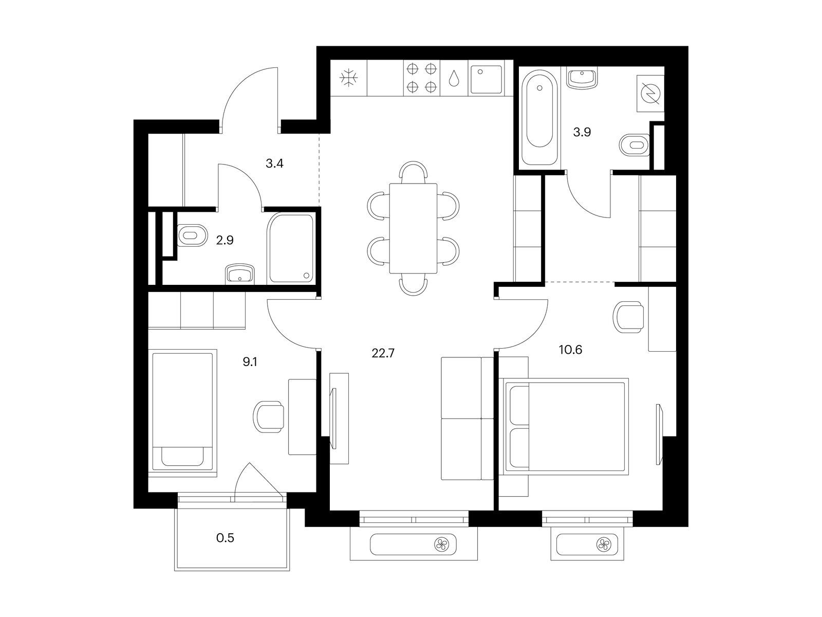 В проекте широкий выбор продуманных и функциональных планировок для разных сценариев жизни. Мы предусмотрели мастер-спальни с собственной ванной и выделенной зоной для гардероба. Также есть варианты с компактной кухней-нишей, постирочной и сквозным санузлом.