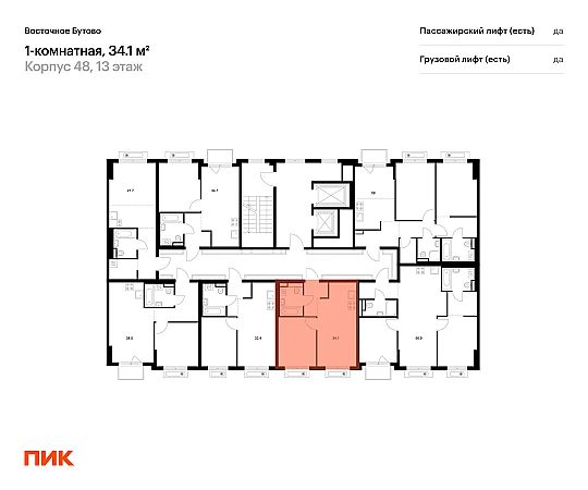 Продаётся 1-комн.квартира площадью 34.10 кв.м на 13 этаже 15 этажного дома (Корпус 48, секция 3) проекта ПИК Восточное Бутово. Светлый просторный подъезд на уровне земли, функциональная планировка, большие окна, с отделкой.