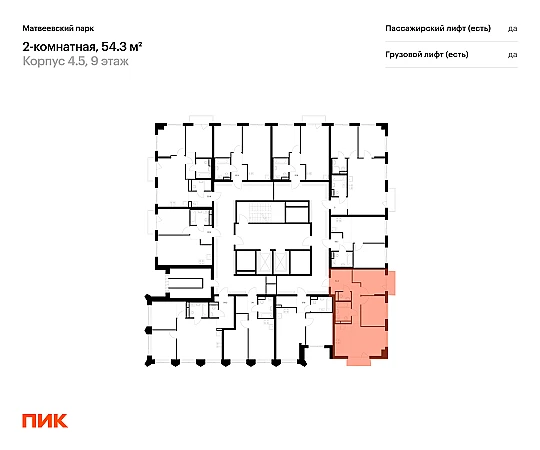 Продаётся 2-комн.квартира площадью 54.30 кв.м на 9 этаже 13 этажного дома (Корпус 4.5, секция 3) проекта ПИК Матвеевский парк. Светлый просторный подъезд на уровне земли, функциональная планировка, большие окна, с отделкой.