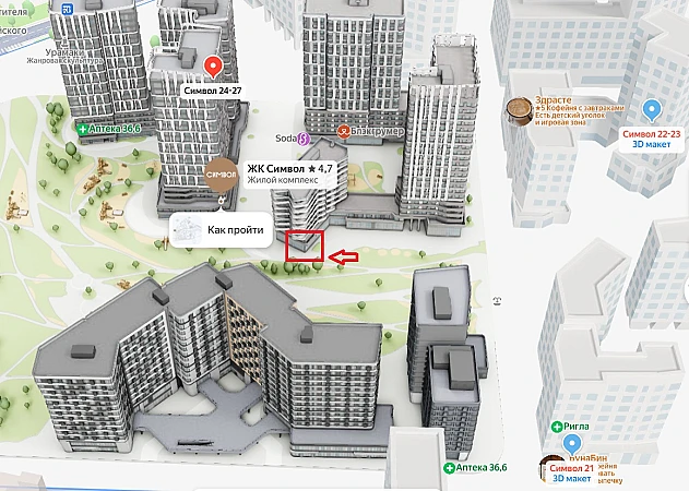 Сетевое окружение ЖК Символ: Пятерочка, Винлаб, ВкусВилл, Здрасте!, SODA, Britva, Ригла, Wildberries, OZON, ЯндексМаркет и другие арендаторы.