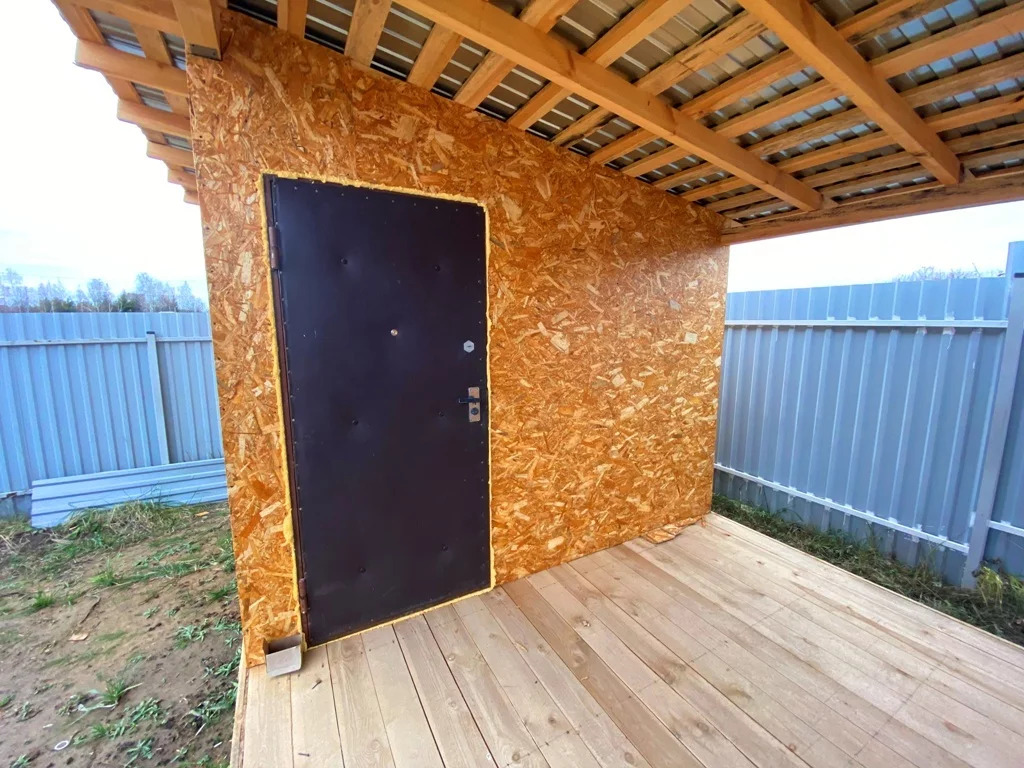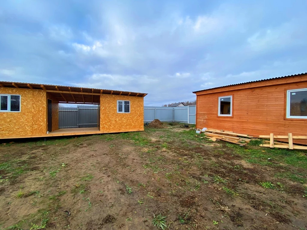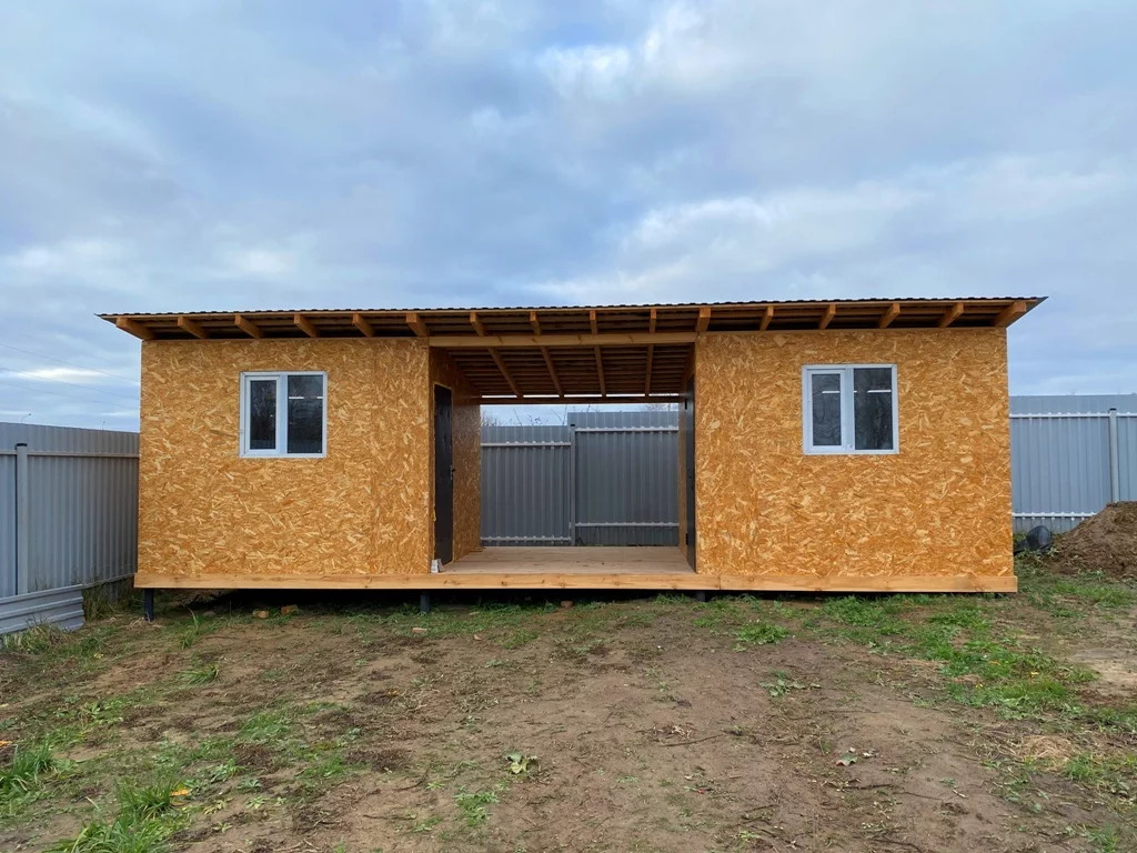 На участке теплая бытовка (2,4 на 6 м) и хоз. постройка (3 на 9 м).