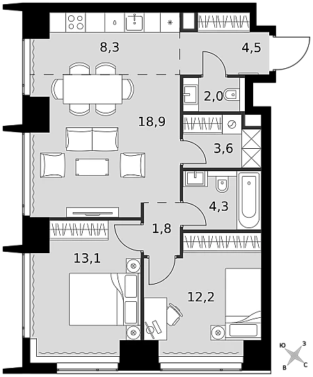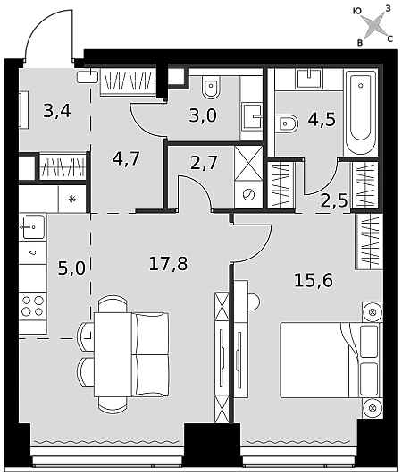 1к квартира 52 м² в ЖК Клубный город на реке Primavera (Примавера)