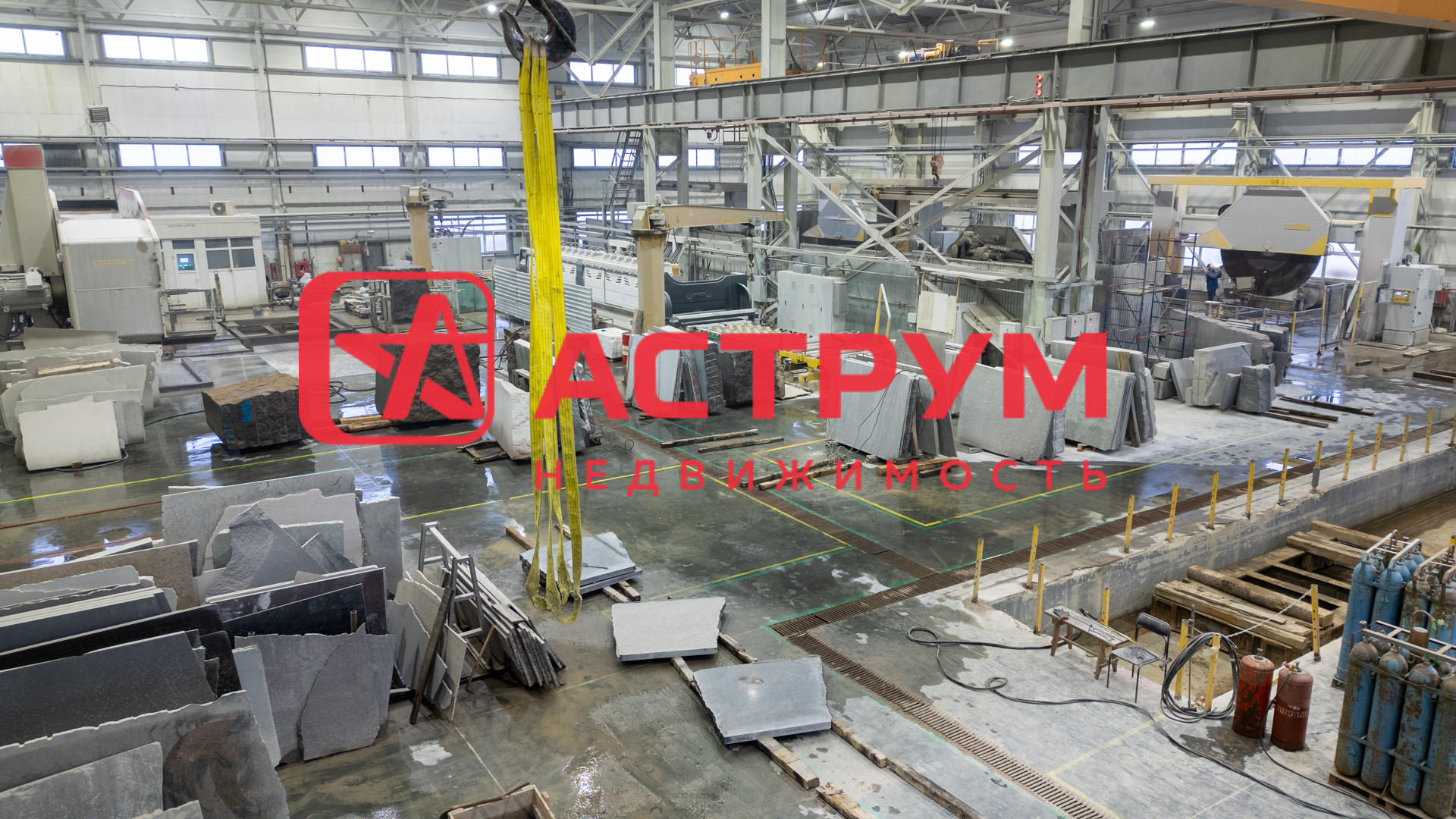 Объект полностью готов к эксплуатации. Возможно использование как пустой площадки под ваше производство/склад, так и аренда готового бизнеса — действующего камнеобрабатывающего завода полного цикла (с персоналом и станочным парком).