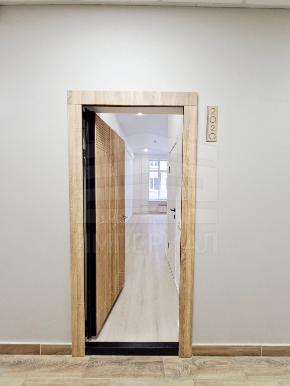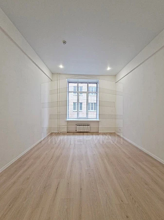 На стенах поклеены обои под покраску, на полу постелен ламинат с плинтусами и откосами. Есть вытяжная вентиляция в санузле и на кухне, выходы хв/гв, место под раковину на кухне. Кроме того, в помещениях уже есть выключатели освещения, розетки для бытовой техники и роутера, а также сделаны закладные для оптоволокна для интернета.