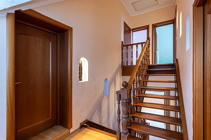 Площадь двухэтажного дома в стиле 2000-х годов — 220,9м2. Его можно переустроить под себя или снести (снос при желании покупателя входит в стоимость участка).