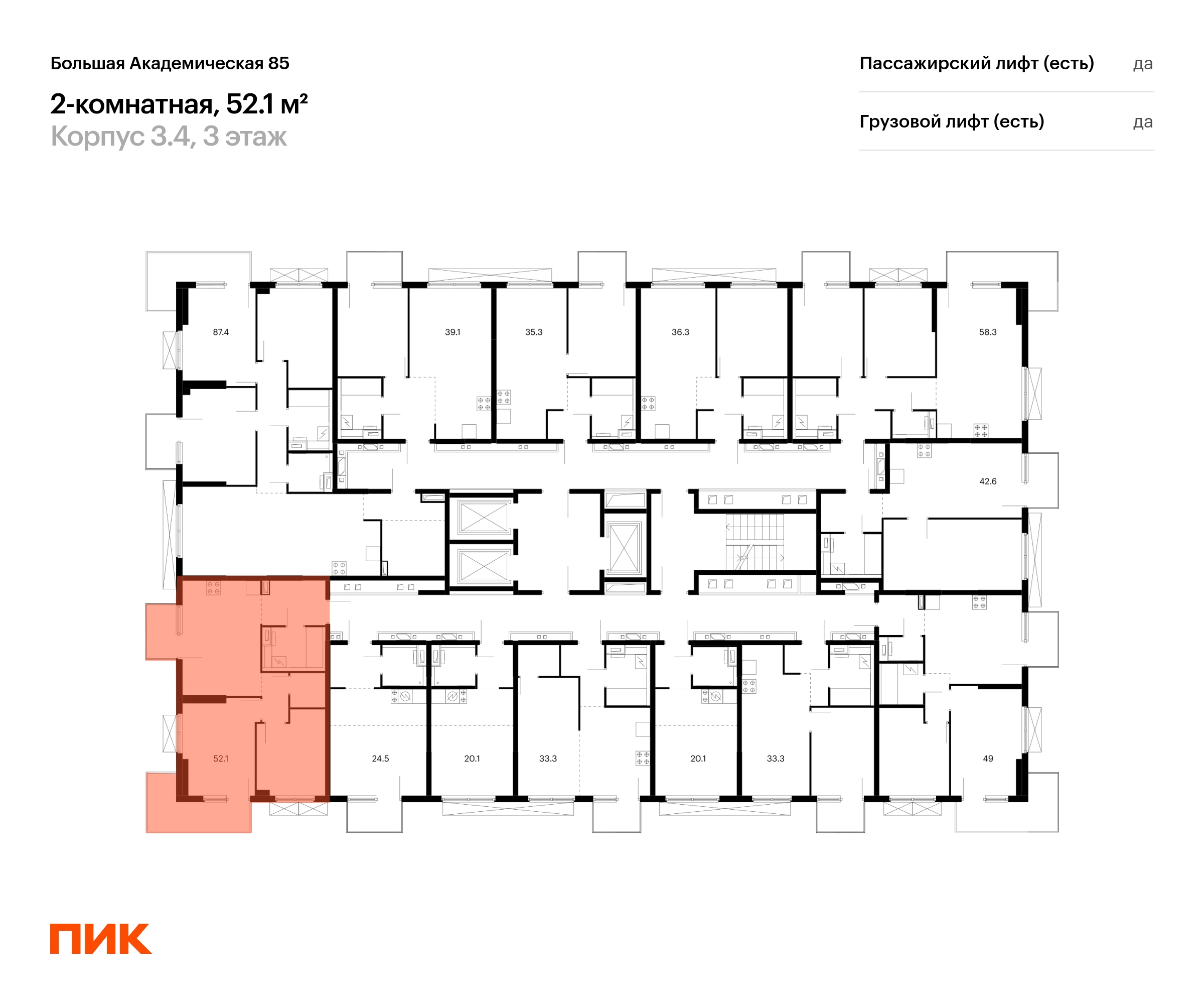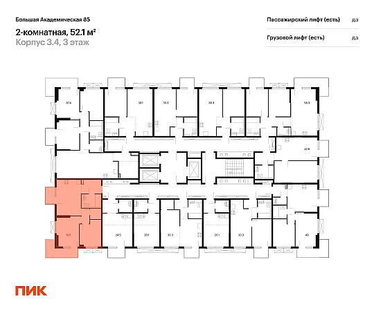 Продаётся 2-комн.квартира площадью 50.40 кв.м на 3 этаже 24 этажного дома (Корпус 3.4, секция 7) проекта ПИК Большая Академическая 85. Светлый просторный подъезд на уровне земли, функциональная планировка, большие окна, с отделкой.