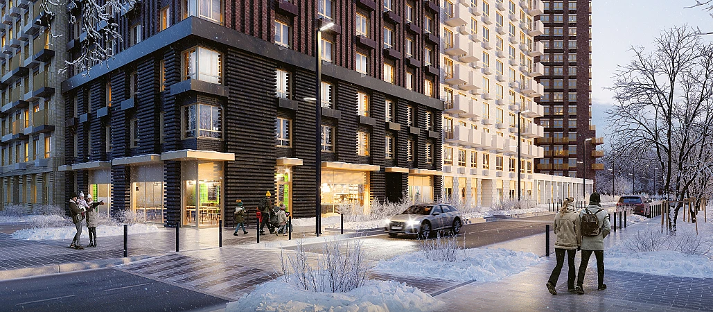 В домах просторные и светлые подъезды без ступеней и пандусов, с выходами во двор и на улицу. На первых этажах домов — магазины и кафе. Для владельцев автомобилей предусмотрен подземный паркинг, а для самых маленьких жителей — собственный детский сад, который объединён с начальной школой.