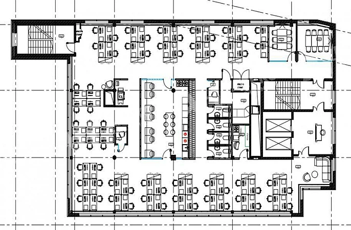 Помещение имеет дизайнерский ремонт и полностью укомплектовано мебелью, рассчитанной на 63 рабочих места. Планировка смешанная и включает open space, две переговорные комнаты на 14 человек, ресепшен, гардеробную, серверную комнату, кофе-поинт и четыре санузла.