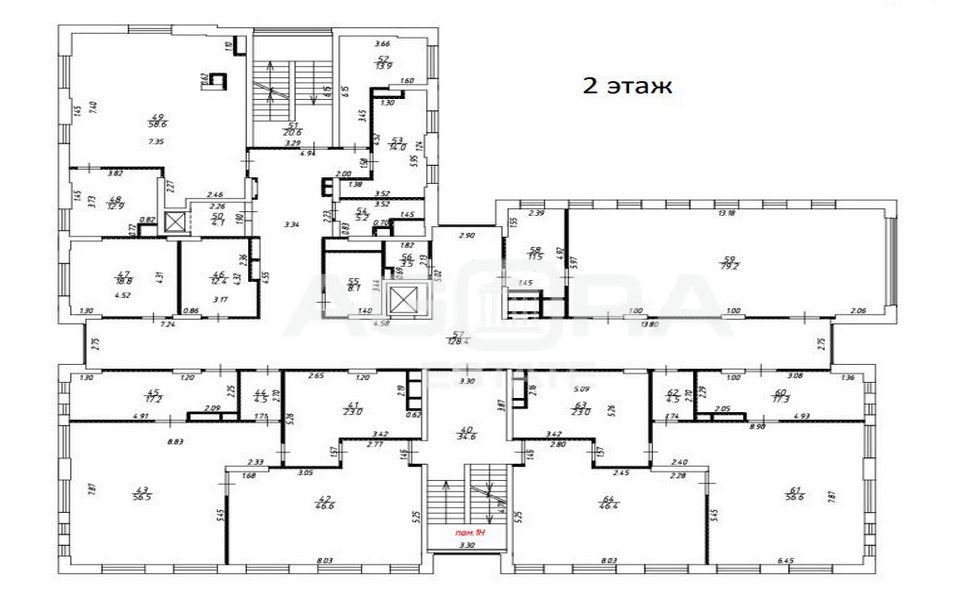 Есть 4 отдельных входа в здание. Качественное освещение, много окон по периметру на каждом этаже, высота потолков 3,3 – 4,2 м. Технические характеристики: системы ГВС и ХВС, отопление, вентиляция, пожарные системы. Состояние помещения – с частичной отделкой. Электрическая мощность 100 кВт.