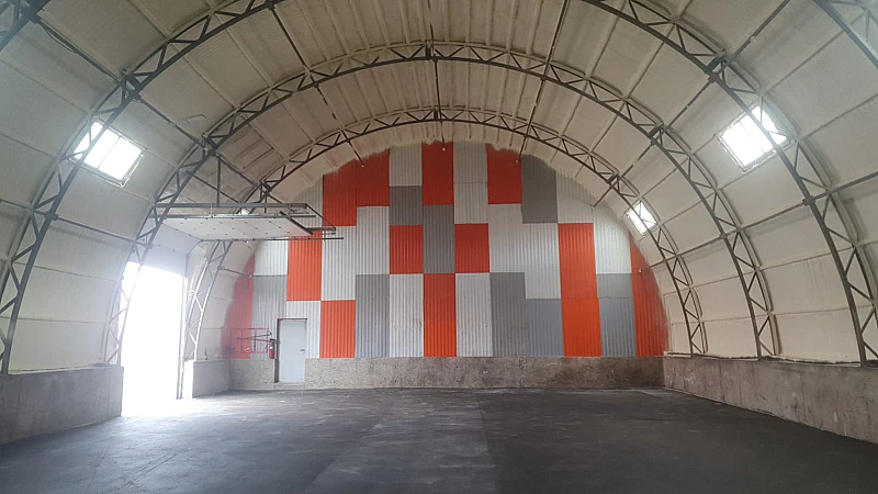 Площадью 1200 м2. Строение арочного типа, утепленное.