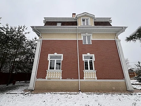 -Монолитно-кирпичный конструктив с экологичной отделкой под дерево.