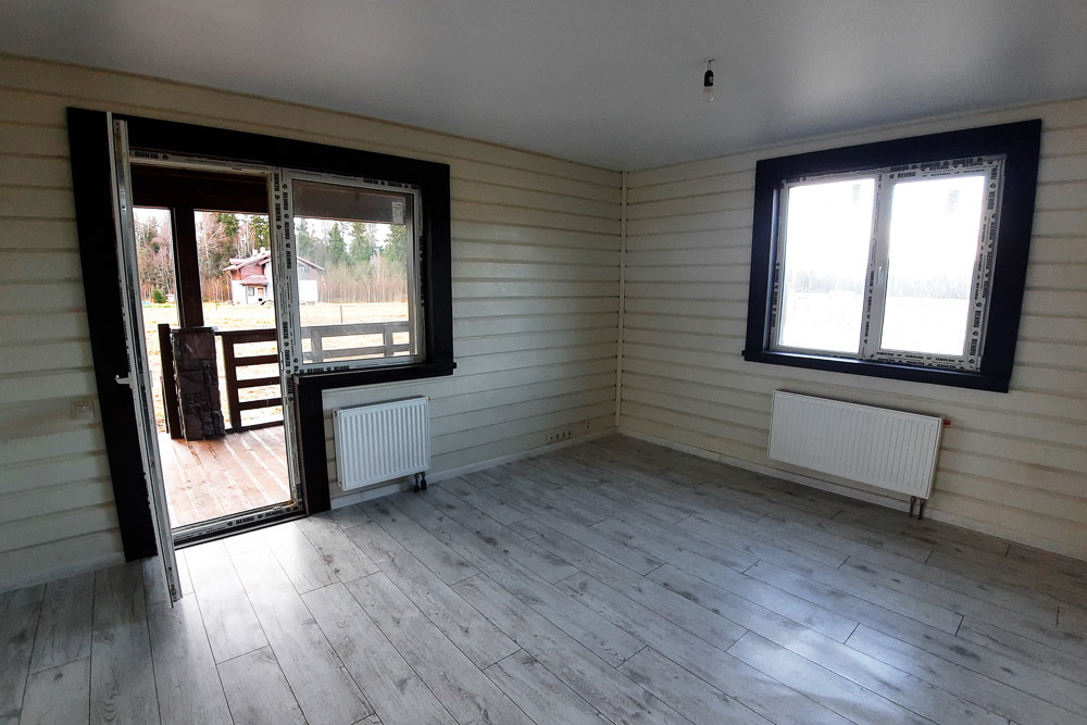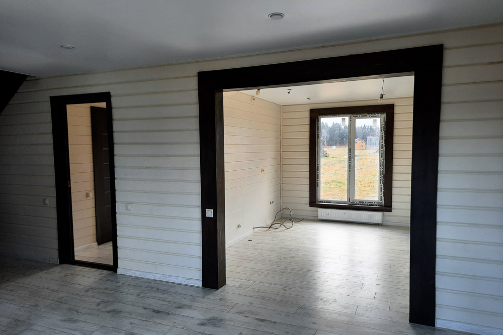 Внешняя и внутренняя отделка дома Фасад дома утеплен и отделан имитацией бруса. Внутренняя отделка не включена в стоимость.