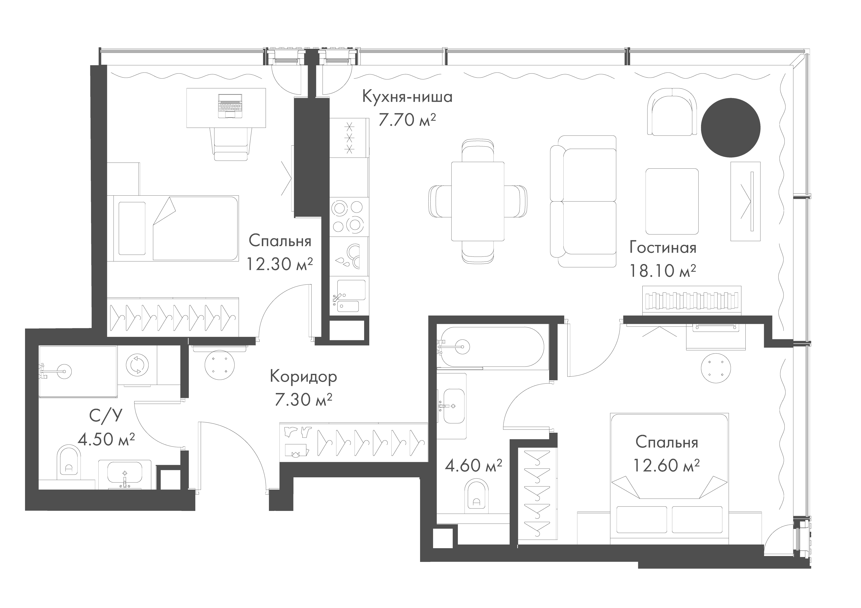Купить 3к квартиру 86 м² в ЖК Павелецкая от Гранель