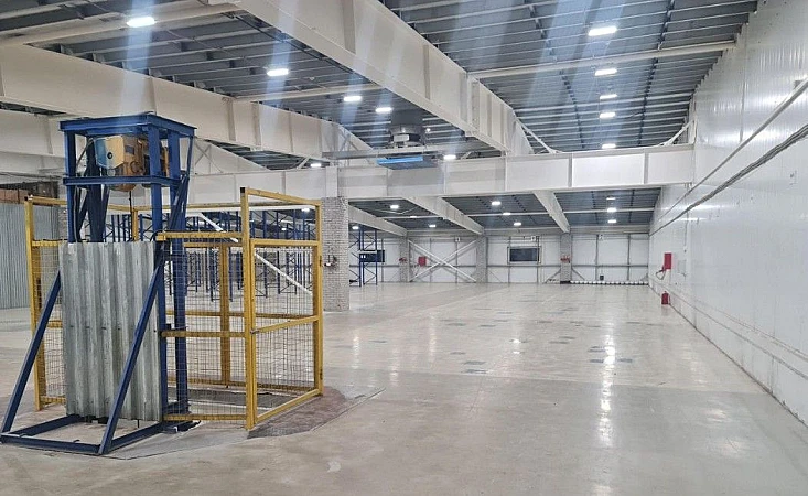 Высота потолков 4-6 м, один подъёмник грузоподъёмностью 1 т.