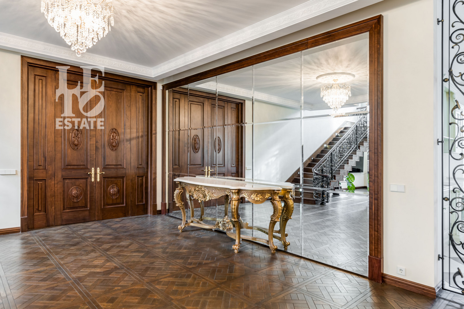 Цокольный этаж расположен под всей частью дома и включает в себя комфортную зону отдыха с сауной и бильярдом, винную комнату, постирочную, комнату для персонала с собственным выходом на участок, котельную.