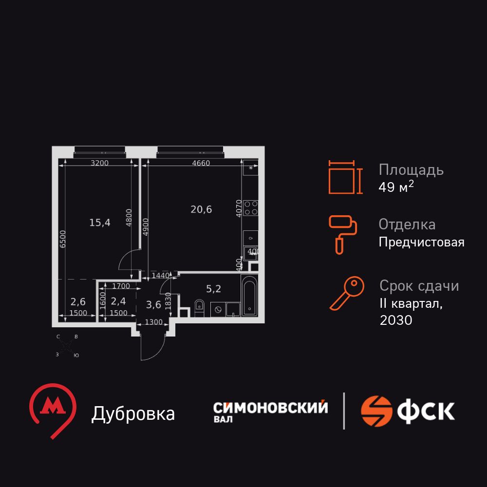 Купить 2к квартиру 49 м² в ЖК Симоновский вал