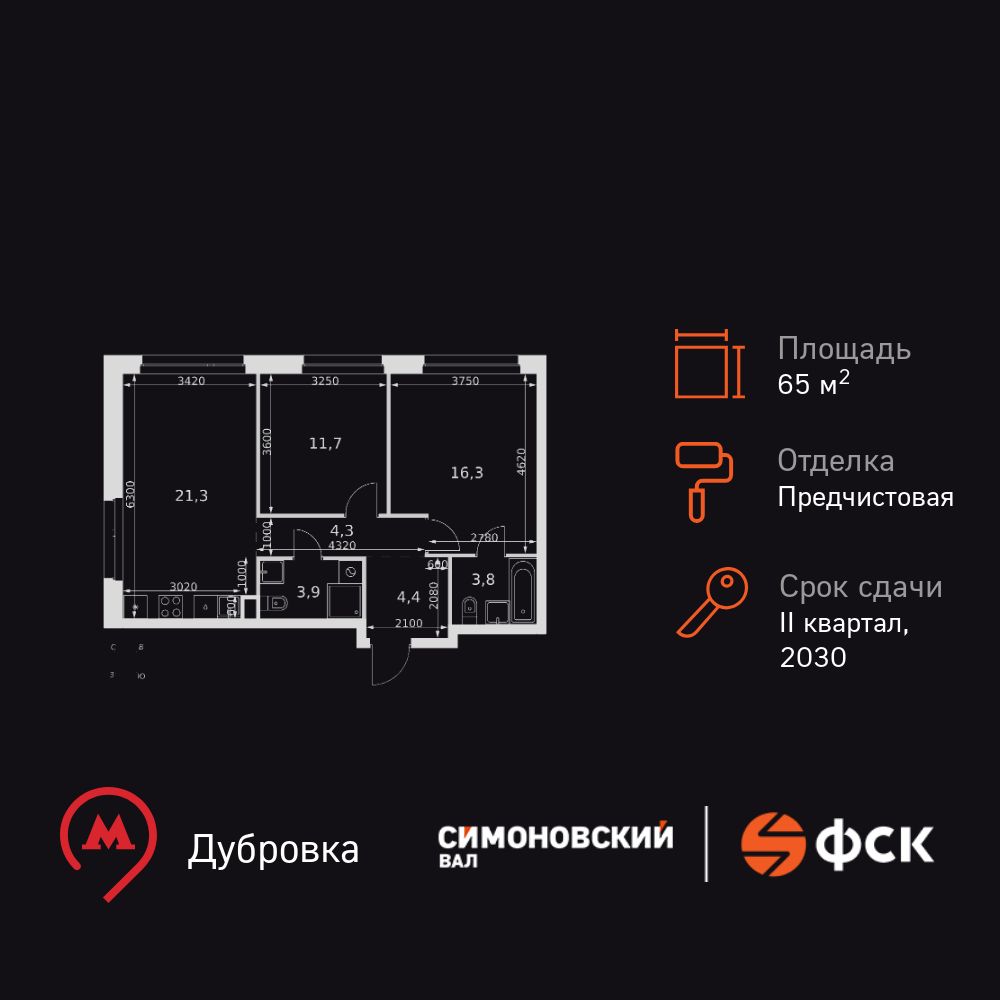 Купить 3к квартиру 65 м² в ЖК Симоновский вал