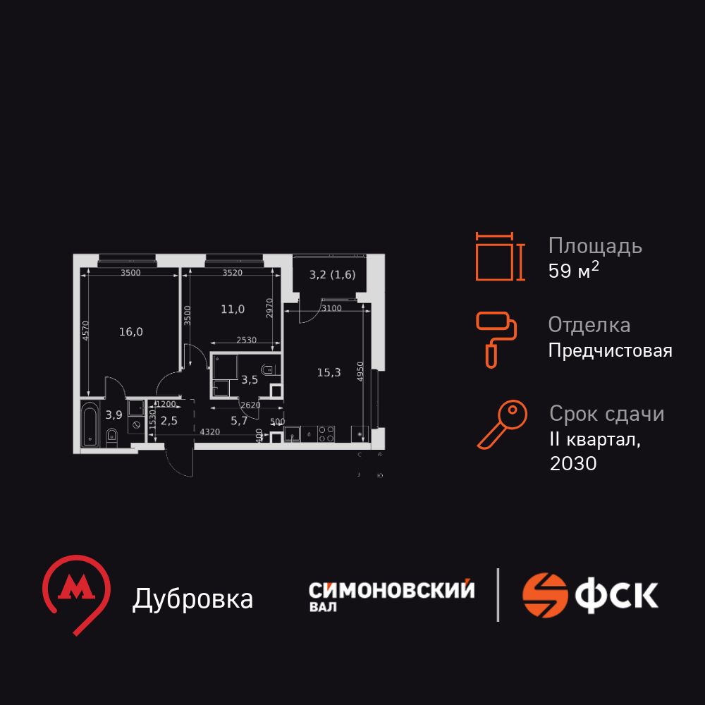 Купить 3к квартиру 59 м² в ЖК Симоновский вал