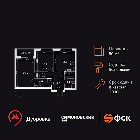 Купить 3к квартиру 59 м² в ЖК Симоновский вал