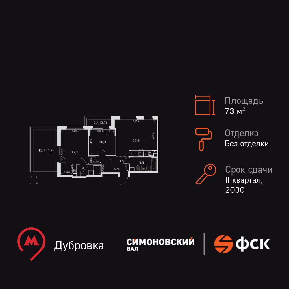 Купить 3к квартиру 73 м² в ЖК Симоновский вал