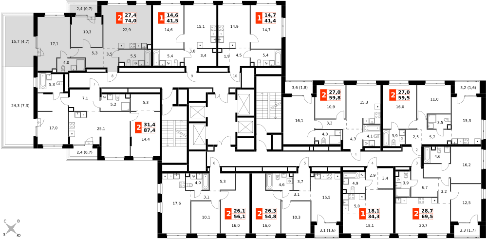 Продаётся 3-к квартира номер 223 общей площадью 73.9 кв.м. на 20-м этаже 27 этажного здания. Без отделки.