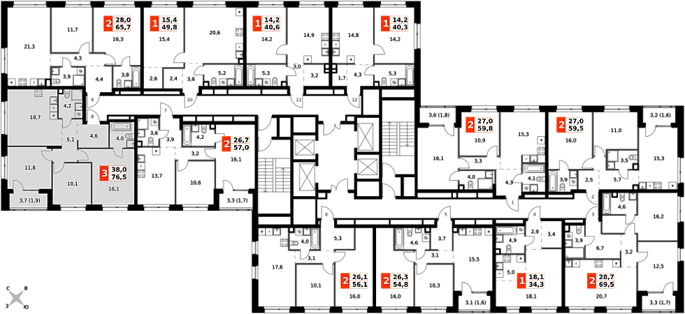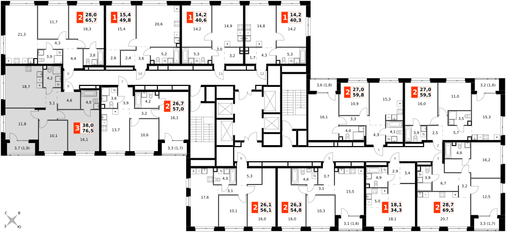 Продаётся 4-к квартира номер 8 общей площадью 76.5 кв.м. на 2-м этаже 27 этажного здания. Без отделки.
