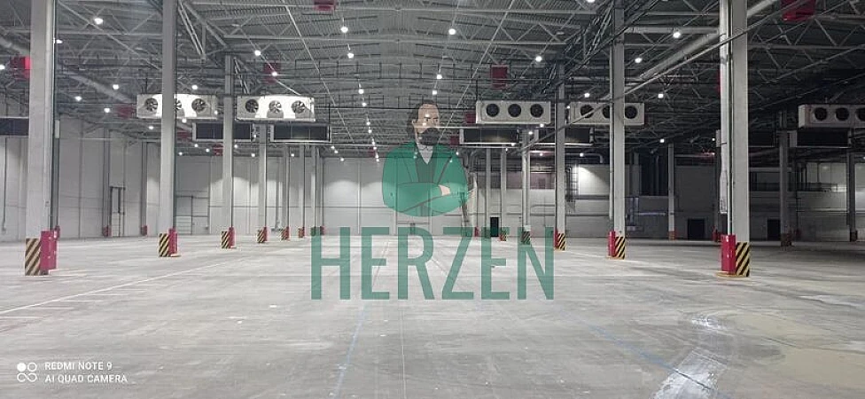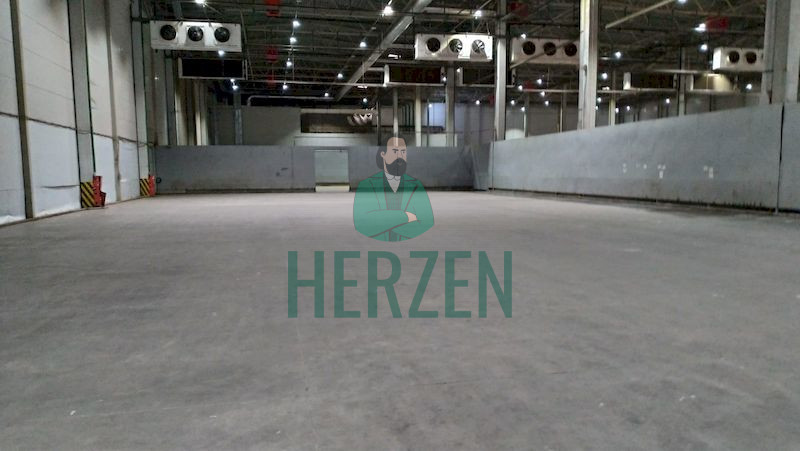 Ровный бетонный пол с антипылевым покрытием. Допустимая нагрузка 8 т/м2