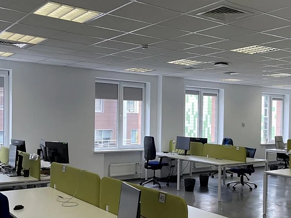 . Строение 6. Смешанная планировка (4 кабинета, 55 рабочих мест, серверная, кухня, ресепшн), офисная отделка. В здании пропускной режим, приточная вентиляция, центральное кондиционирование.