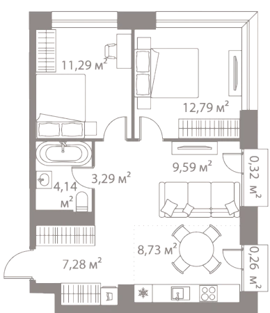 Купить 3к квартиру 57 м² в ЖК LIFE Варшавская