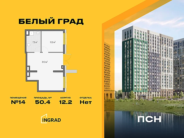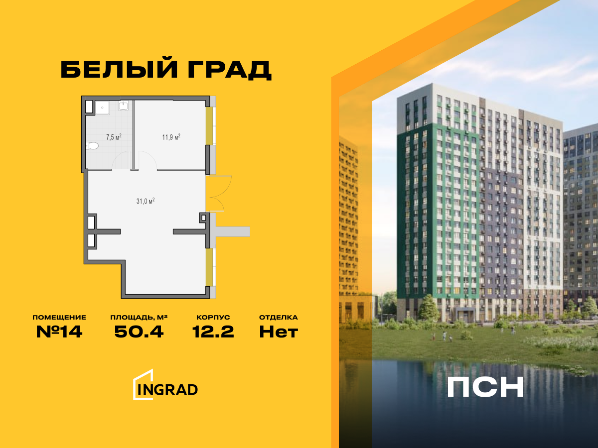 Беспроцентная рассрочка до ввода в эксплуатацию. Прямая продажа от девелопера Инград. Продается торговое помещение площадью 50,4 кв.м в жилом квартале Белый Grad. Помещение расположено на 1 этаже в корпусе 12.2.