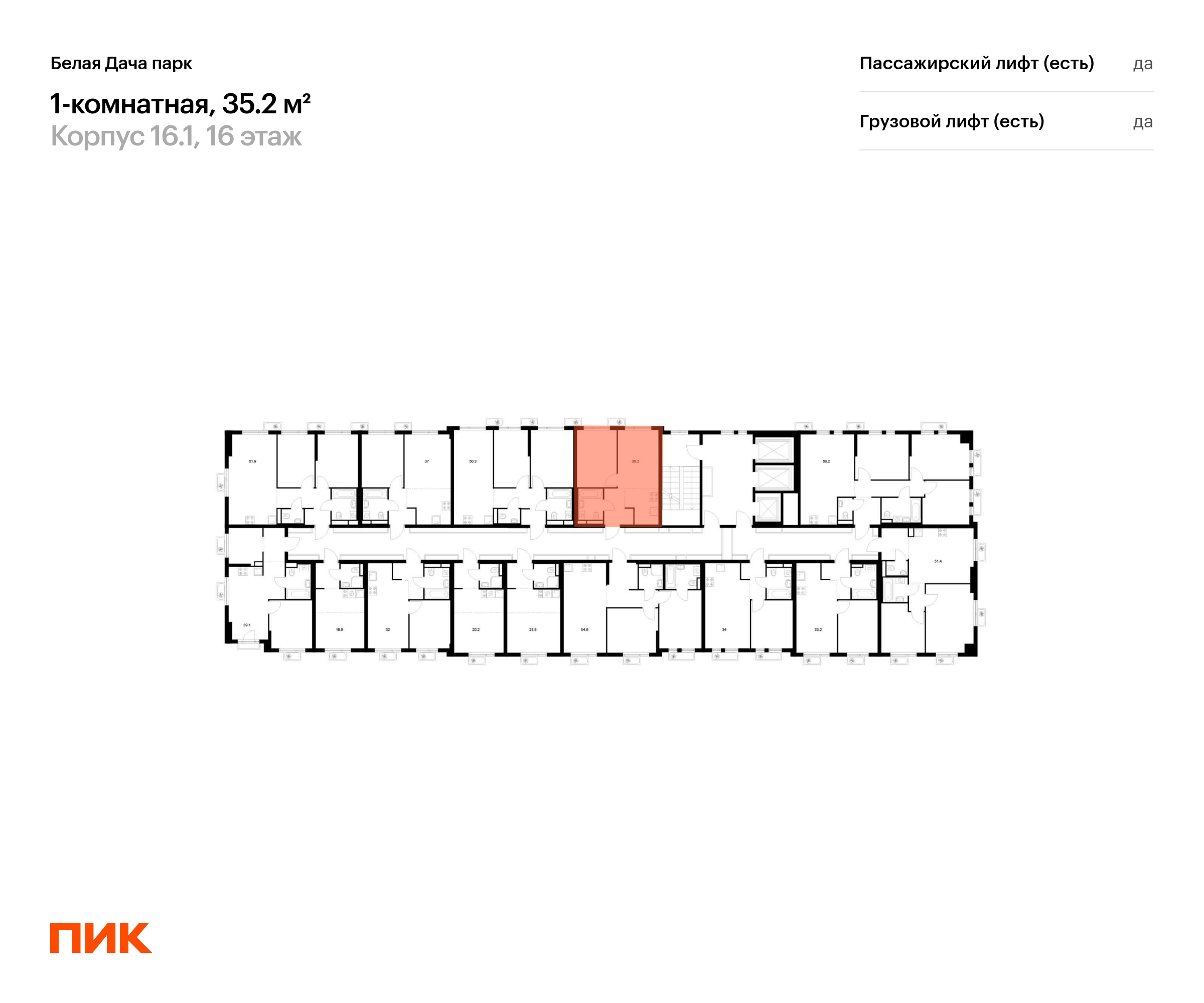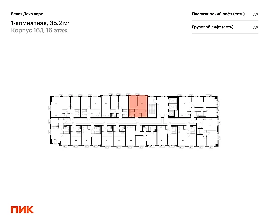 Продаётся 1-комн.квартира площадью 35.20 кв.м на 16 этаже 25 этажного дома (Корпус 16.1, секция 1) проекта ПИК Белая Дача парк. Светлый просторный подъезд на уровне земли, функциональная планировка, большие окна, с отделкой.
