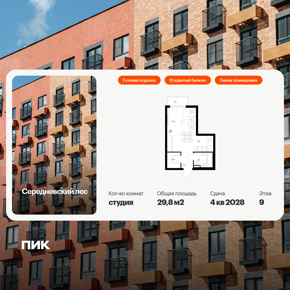 Продаётся 1-комн.квартира площадью 33.97 кв.м на 6 этаже 9 этажного дома (Корпус 4.1, секция 6) проекта ПИК Ильинские луга. Светлый просторный подъезд на уровне земли, функциональная планировка, большие окна, с отделкой.