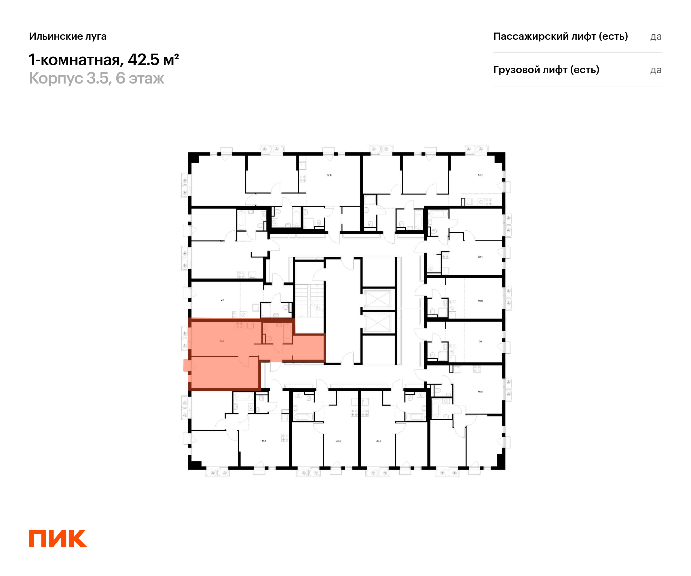Продаётся 1-комн.квартира площадью 42.50 кв.м на 6 этаже 9 этажного дома (Корпус 3.5, секция 5) проекта ПИК Ильинские луга. Светлый просторный подъезд на уровне земли, функциональная планировка, большие окна, с отделкой.