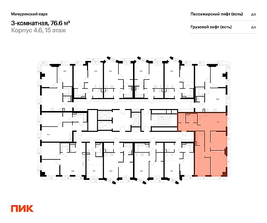 Продаётся 3-комн.квартира площадью 76.60 кв.м на 15 этаже 23 этажного дома (Корпус 4.6, секция 2) проекта ПИК Мичуринский парк. Светлый просторный подъезд на уровне земли, функциональная планировка, большие окна, с отделкой.