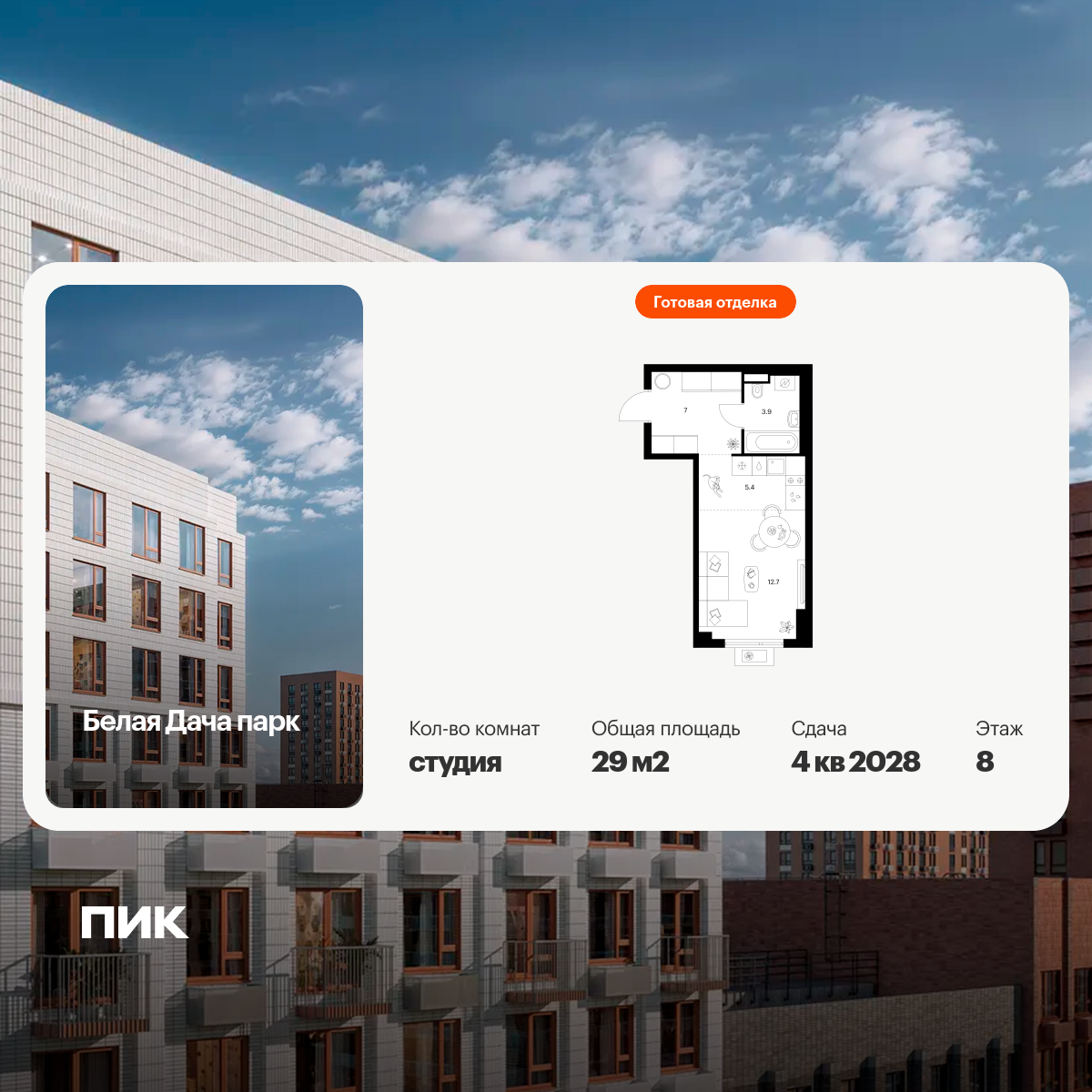 Купить квартиру студию 19 м² в ЖК Белая Дача парк