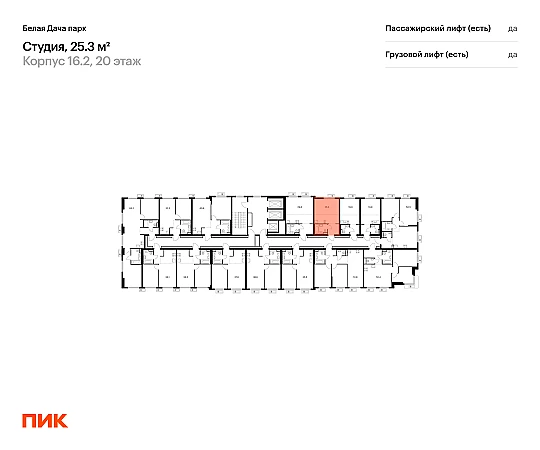 Продаётся квартира-студия площадью 25.30 кв.м на 20 этаже 25 этажного дома (Корпус 16.2, секция 5) проекта ПИК Белая Дача парк. Светлый просторный подъезд на уровне земли, функциональная планировка, большие окна, с отделкой.