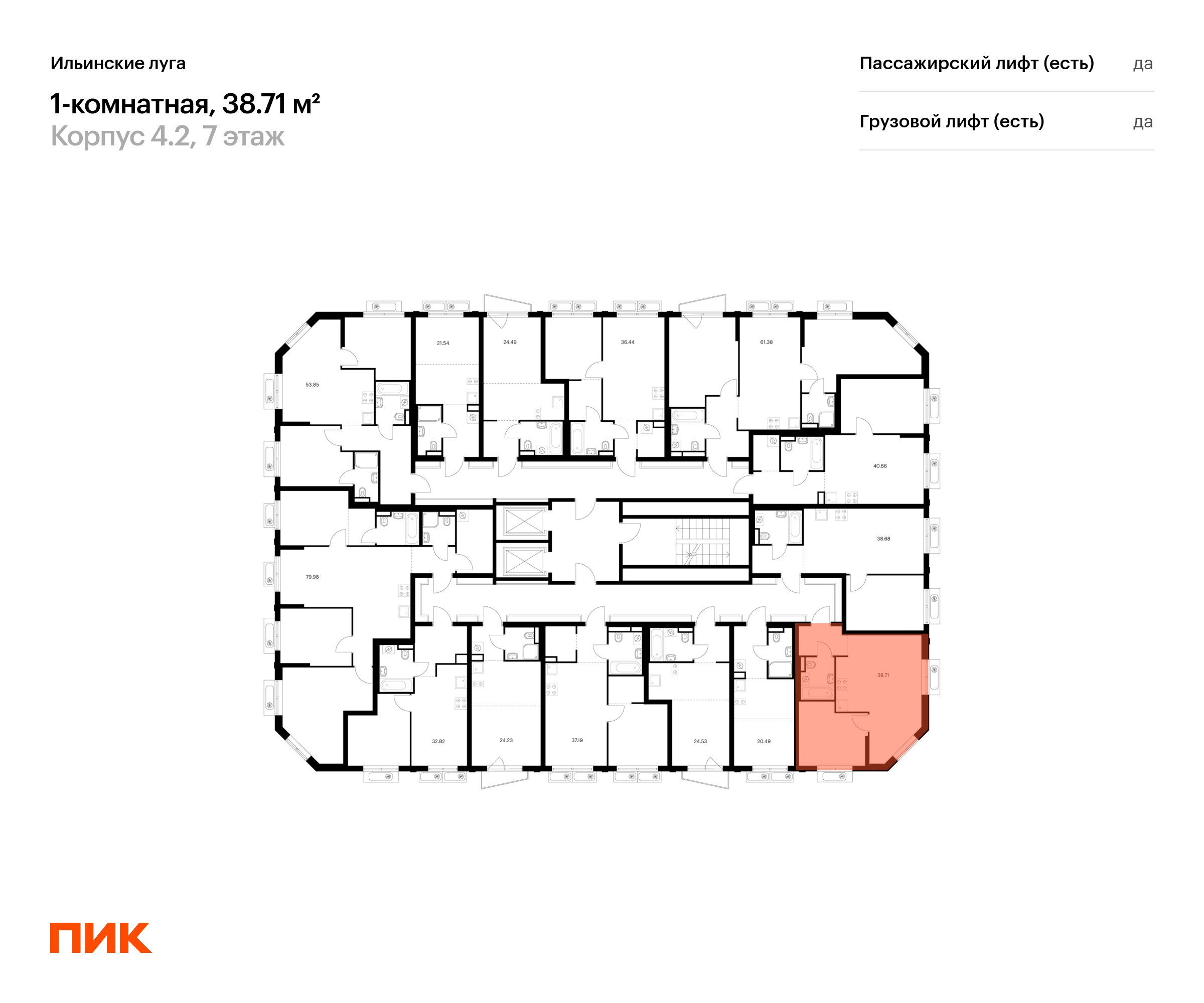 Продаётся 1-комн.квартира площадью 38.71 кв.м на 7 этаже 9 этажного дома (Корпус 4.2, секция 2) проекта ПИК Ильинские луга. Светлый просторный подъезд на уровне земли, функциональная планировка, большие окна, с отделкой.