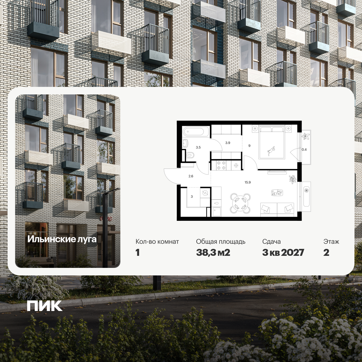 Купить 1к квартиру 38 м² в ЖК Ильинские луга