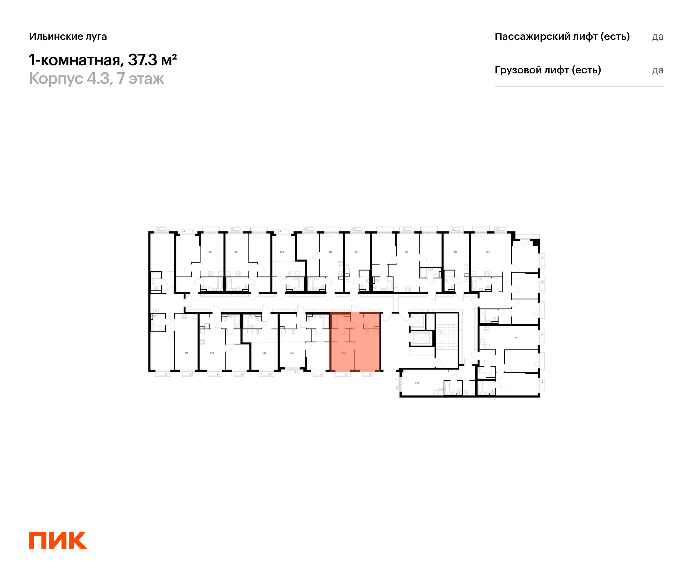 Продаётся 1-комн.квартира площадью 37.30 кв.м на 7 этаже 9 этажного дома (Корпус 4.3, секция 2) проекта ПИК Ильинские луга. Светлый просторный подъезд на уровне земли, функциональная планировка, большие окна, с отделкой.