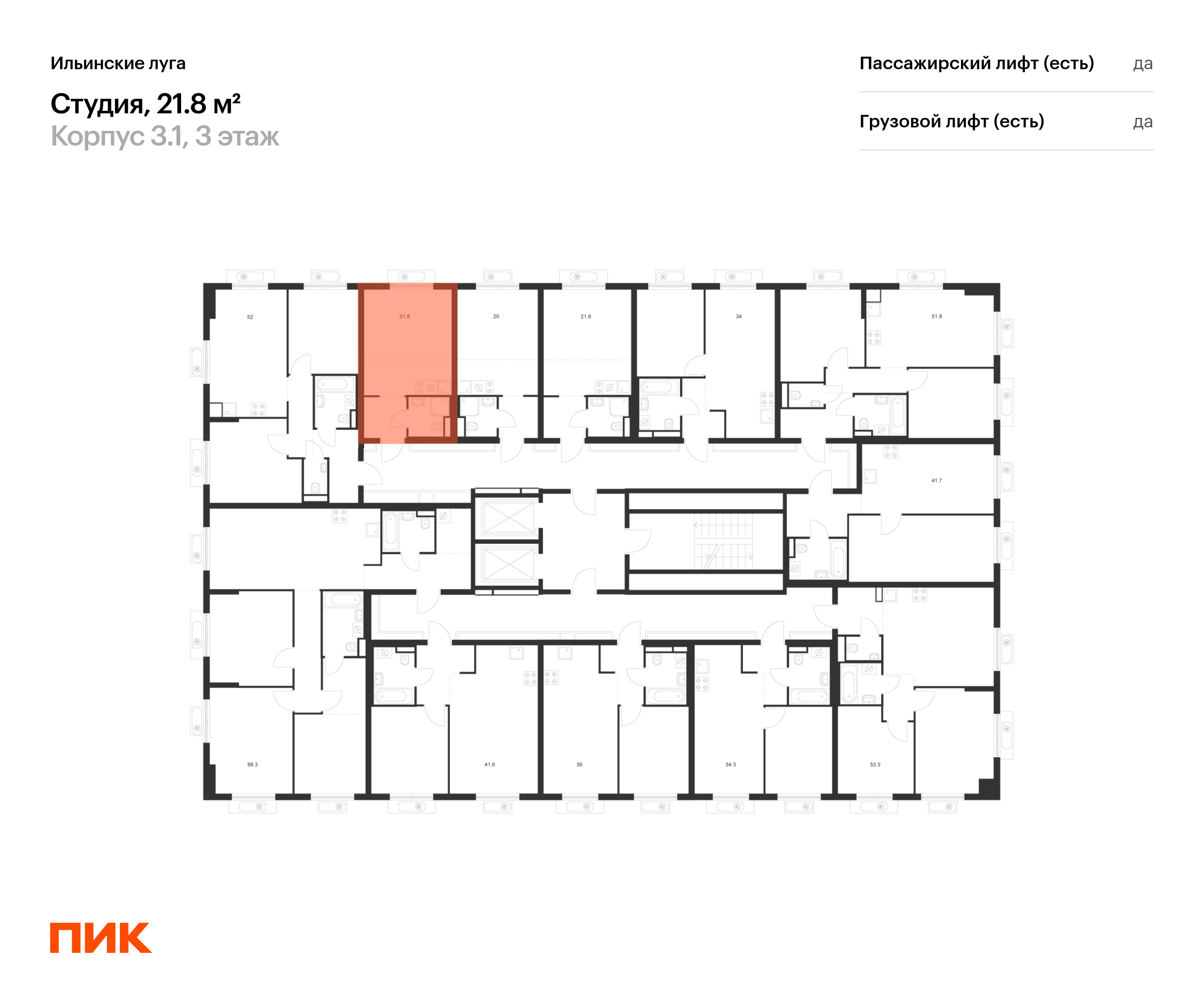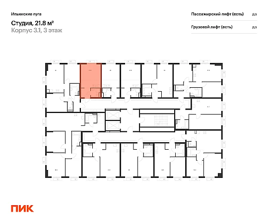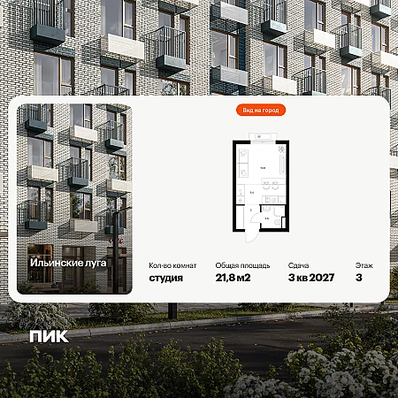 Продаётся квартира-студия площадью 21.80 кв.м на 3 этаже 9 этажного дома (Корпус 3.1, секция 1) проекта ПИК Ильинские луга. Светлый просторный подъезд на уровне земли, функциональная планировка, большие окна, с отделкой.